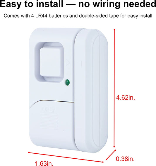 Personal Security Window and Door Alarm, 12 Pack, DIY Protection, Burglar Alert, Wireless Chime/Alarm, Easy Installation, Home Security, Ideal for Home, Gara, Apartment and More, White, 45989